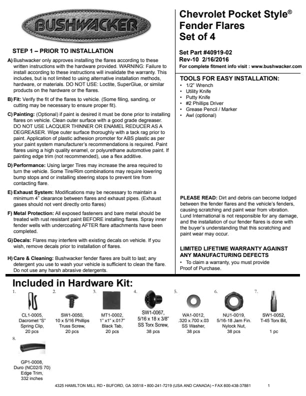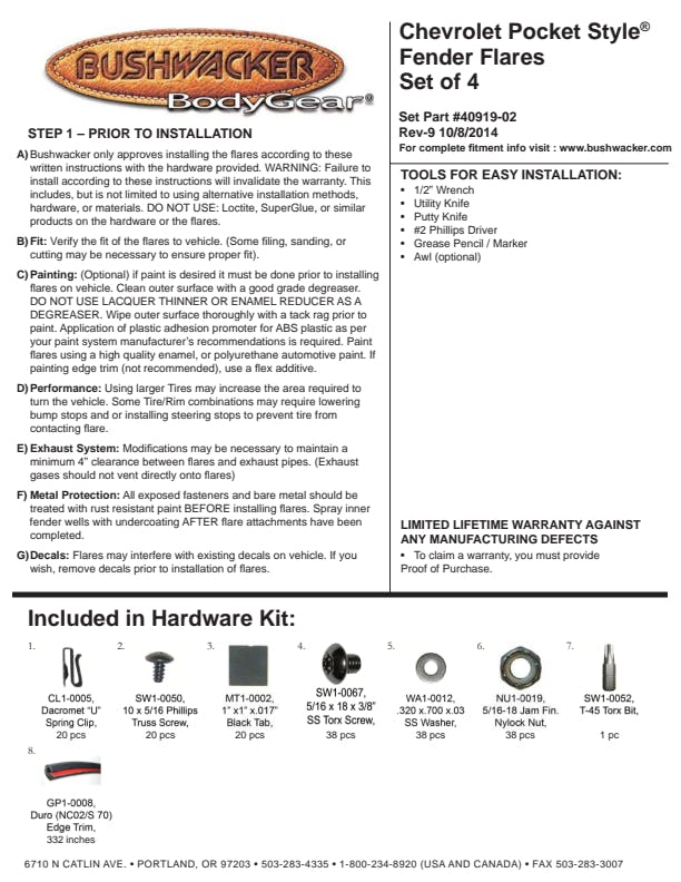 - Precision engineered for a perfect fit that provides the rugged look of bolted-on flares without drilling through the body