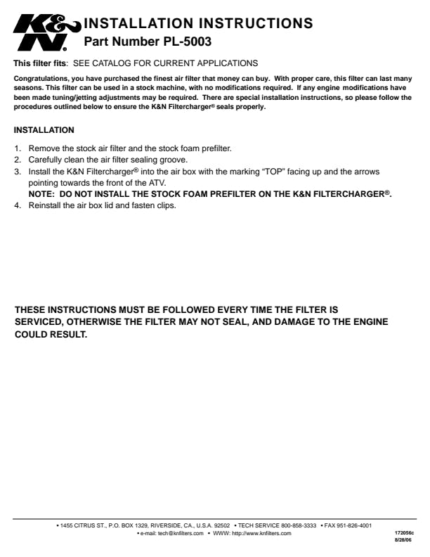 K&N off-road replacement air filters are ideal for extended use in dirty and dusty off-road riding and provide clean carburetion even at high altitude. Generally, no jet changes are required with just a K&N filter element. K&N replacement air filters are washable and reusable and provide high air-flow with excellent filtration.