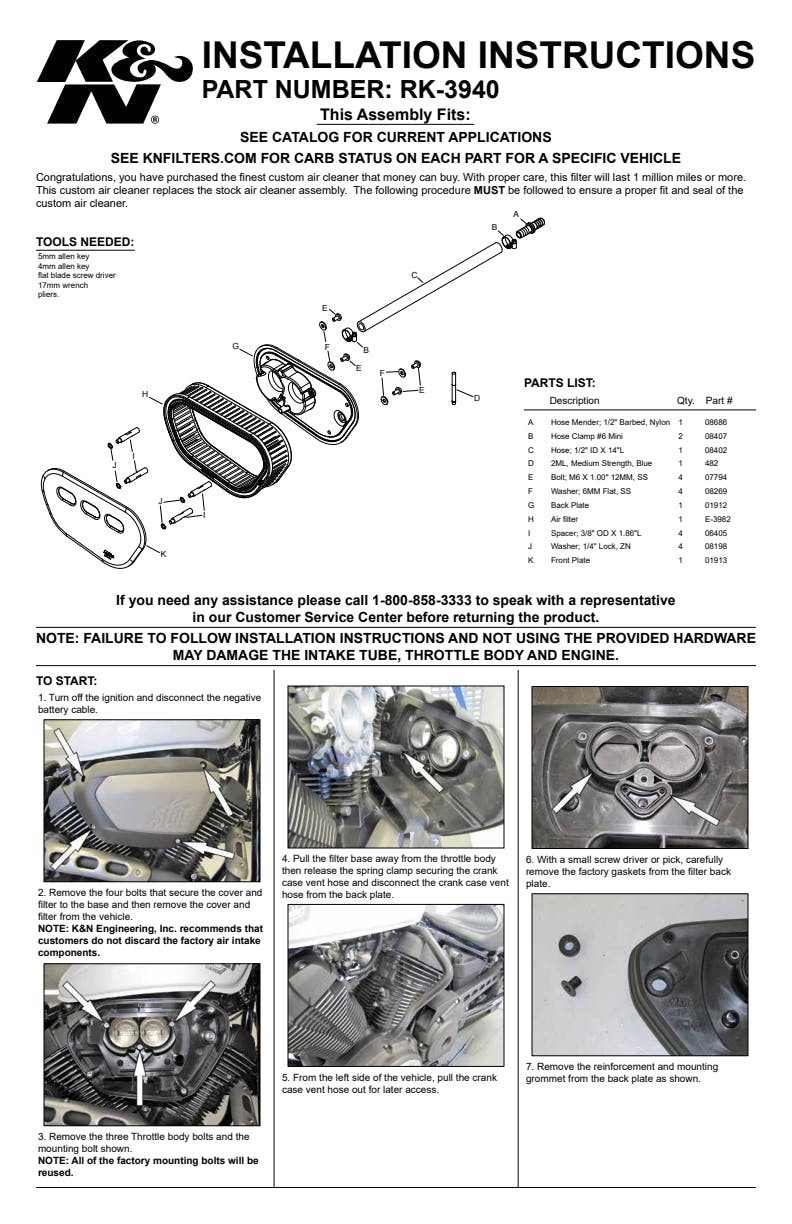 The K&N RK-3940 High-Flow Air Intake System increases engine intake airflow and delivering more horsepower & torque to specific Yamaha XVS950 model motorcycles. The intake system increases power by eliminating the stock OE air cleaner and replacing it with a complete High-Flow Air Intake System. The sturdy, custom aluminum backing plate mounts directly to the throttle body via an aluminum integrated, internal-run breather system. The intake system comes with a K&N Air Filter for high air flow and long service intervals. The K&N High-Flow Air Filter is washable, reusable, pre-oiled and ready for installation.