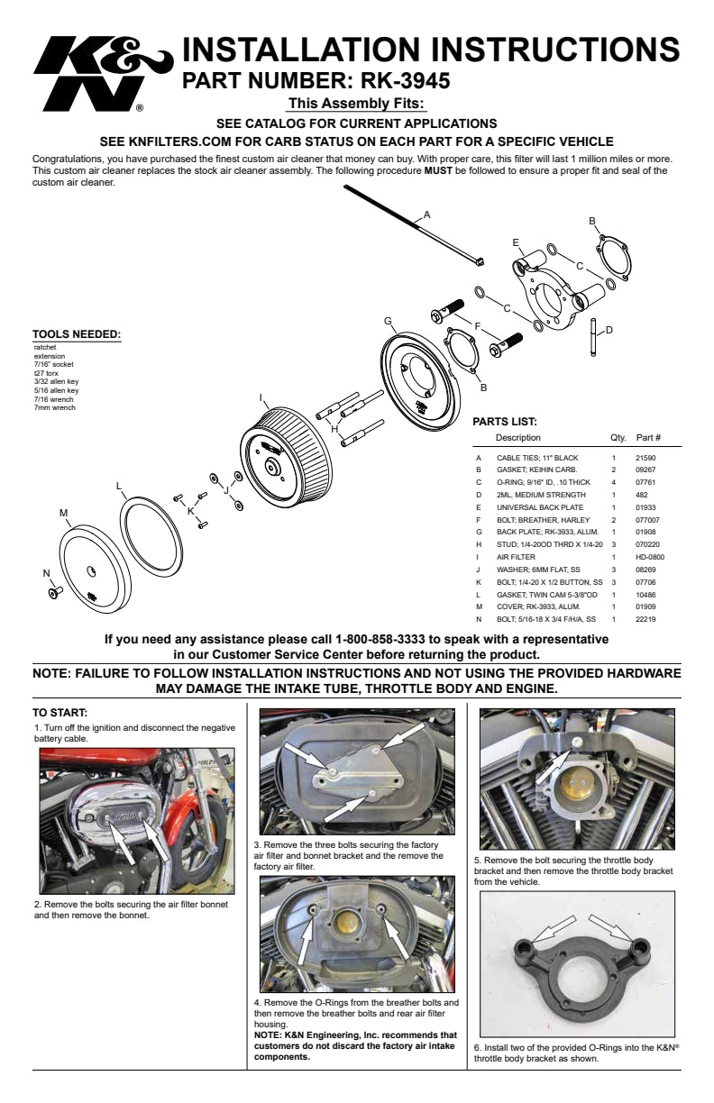 K&N's Street Metal Series High-Flow Air Intake Systems provide attractive styling, offer increased airflow and deliver more horsepower & torque to your Harley-Davidson motorcycle. These air intake systems eliminate the stock OE air cleaner and replace it with a complete high-flow air intake system to increase power. The sturdy, custom aluminum backing plate mounts directly to the throttle body via an aluminum integrated, internal-run breather system. The air intake system comes with a K&N Air Filter for high air flow and long service intervals. The K&N air filter is washable, reusable, pre-oiled and ready for installation. To help absorb vibration, a durable mounting gasket is also included. A refined custom chrome beveled cover makes this air intake a flawless combination of form and function.