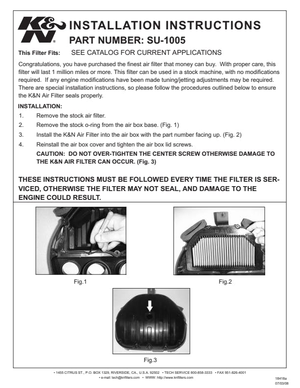 K&N's high-flow air filters are available as a replacement for your stock motorcycle air filter element. They are custom engineered to fit your specific application and are designed to provide low restriction and increased performance, while providing excellent engine protection for your motorcycle.