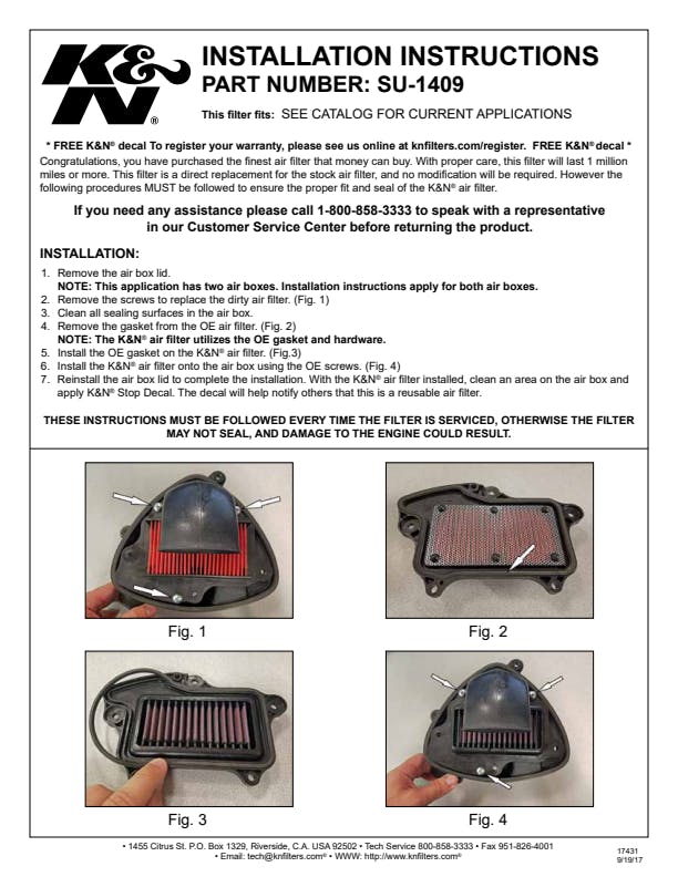 K&N's high-flow air filters are available as a replacement for your stock motorcycle air filter element. They are custom engineered to fit your specific application and are designed to provide low restriction and increased performance, while providing excellent engine protection for your motorcycle.