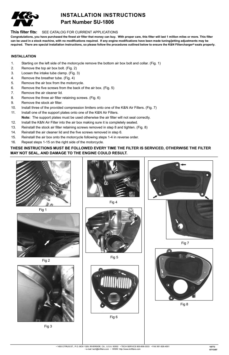 K&N's high-flow air filters are available as a replacement for your stock motorcycle air filter element. They are custom engineered to fit your specific application and are designed to provide low restriction and increased performance, while providing excellent engine protection for your motorcycle.