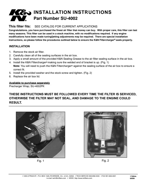 1 Air Filter, 1 K&N 1oz Sealing Grease |