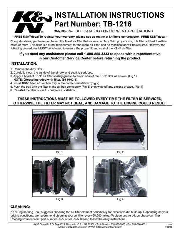 1 Air Filter, 1 K&N 1oz Sealing Grease |