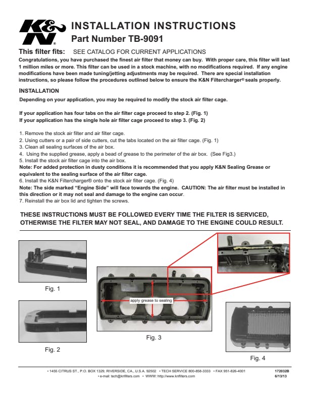 1 Air Filter, 1 K&N 1oz Sealing Grease |