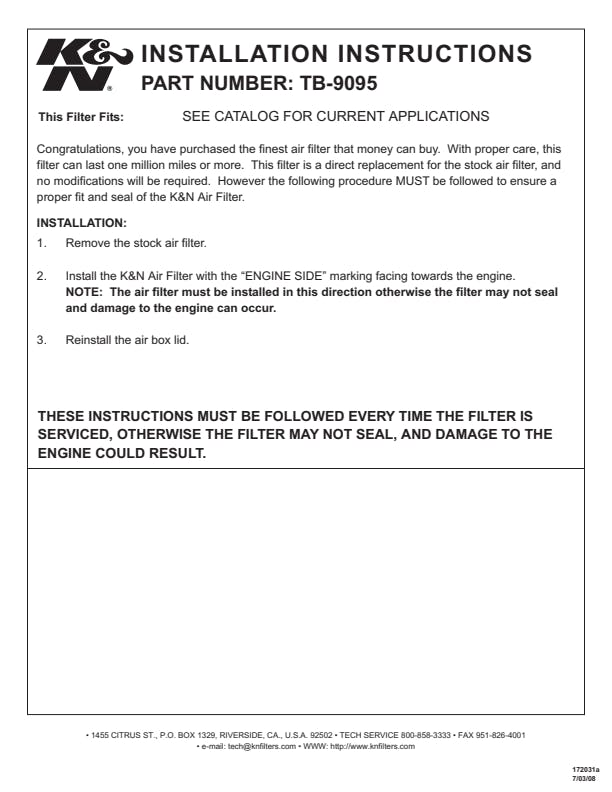 K&N's high-flow air filters are available as a replacement for your stock motorcycle air filter element. They are custom engineered to fit your specific application and are designed to provide low restriction and increased performance, while providing excellent engine protection for your motorcycle.