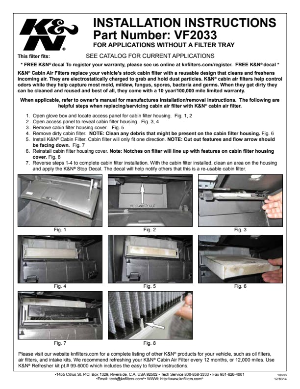 K&N’s line of washable replacement cabin air filters are designed to filter your incoming air using state-of-the-art filtration technology - protecting your vehicle’s occupants, interior, and HVAC system from pollutants and unpleasant odors. Engineered to be washable, reusable, and durable, this cabin filter is designed to last for the entire lifespan of your vehicle!
