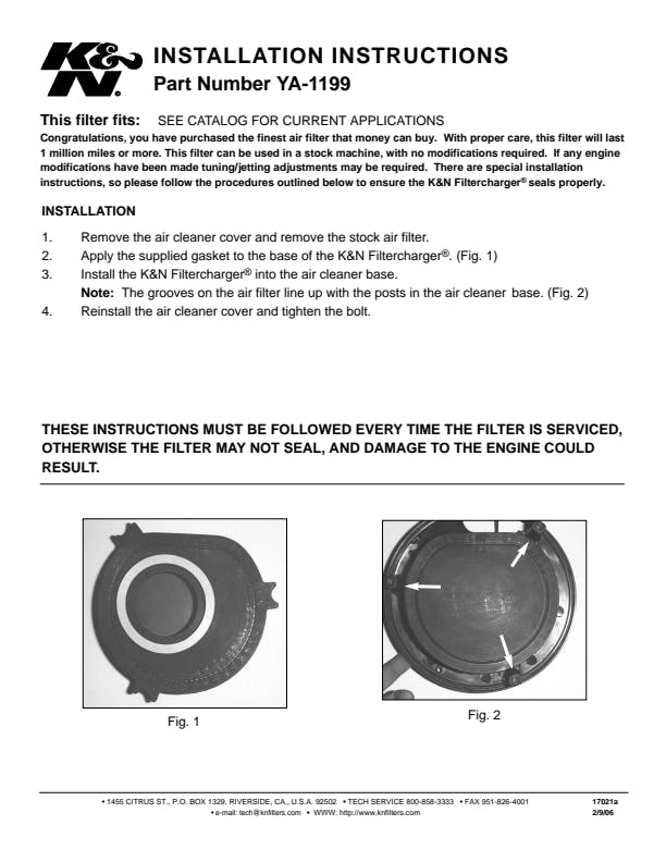 K&N's high-flow air filters are available as a replacement for your stock motorcycle air filter element. They are custom engineered to fit your specific application and are designed to provide low restriction and increased performance, while providing excellent engine protection for your motorcycle.