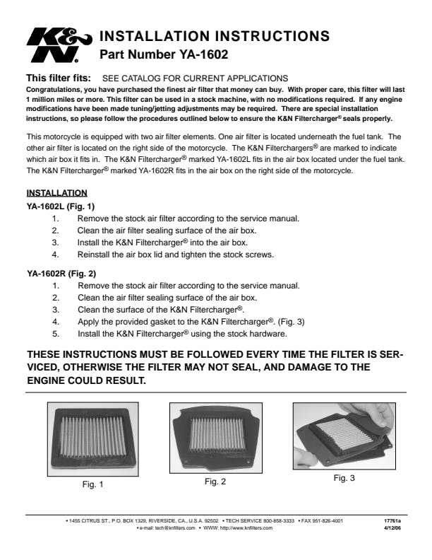 K&N's high-flow air filters are available as a replacement for your stock motorcycle air filter element. They are custom engineered to fit your specific application and are designed to provide low restriction and increased performance, while providing excellent engine protection for your motorcycle.