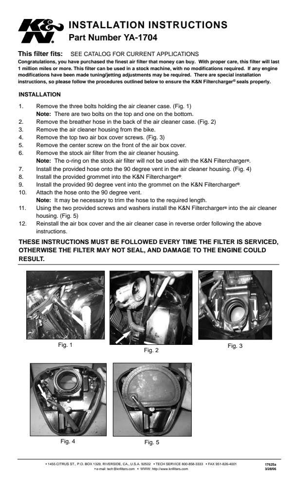 K&N's high-flow air filters are available as a replacement for your stock motorcycle air filter element. They are custom engineered to fit your specific application and are designed to provide low restriction and increased performance, while providing excellent engine protection for your motorcycle.