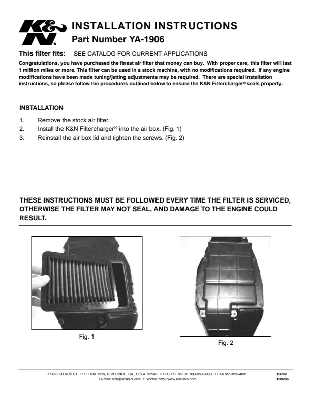 K&N's high-flow air filters are available as a replacement for your stock motorcycle air filter element. They are custom engineered to fit your specific application and are designed to provide low restriction and increased performance, while providing excellent engine protection for your motorcycle.