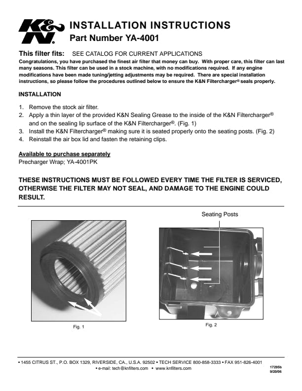 1 Air Filter, 1 K&N 1oz Sealing Grease |