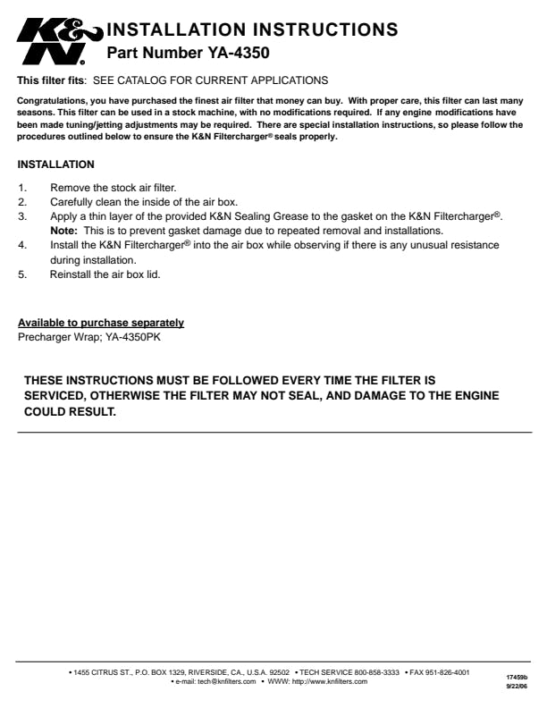 1 Air Filter, 1 K&N 1oz Sealing Grease |