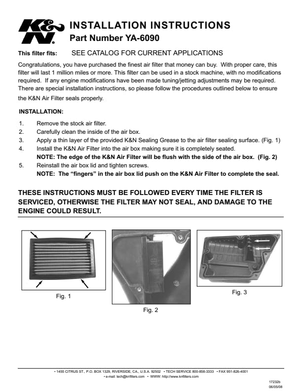 1 Air Filter, 1 K&N 1oz Sealing Grease |