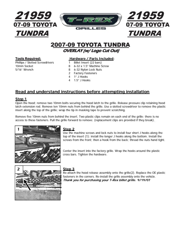 - Does Not Include Factory Grille Assembly