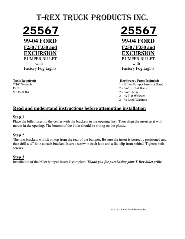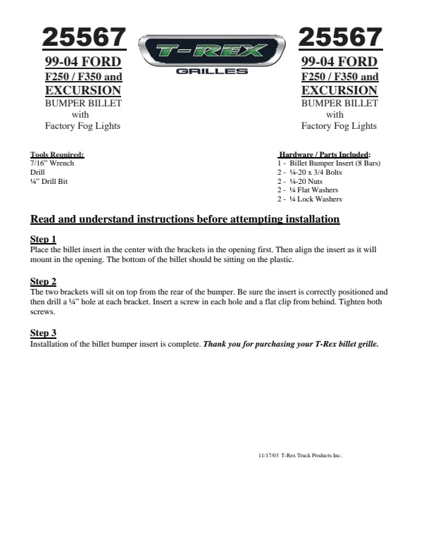 T-REX Billet Grilles set the standard for billet grille design and quality worldwide. The traditional Billet design has become a timeless classic and only T-REX delivers manufacturing and quality standards that exceed OEM. T-REX offers the most comprehensive application list in the industry, most of which install easily with minimal hardware, and all Billet Series Grilles are available in polished or black finishes. We use several different materials throughout the design process. Our uncompromising quality begins with advanced 3D CAD supported engineering and design. All our products undergo rigorous testing for fit, finish, Drivability and durability. Each part starts with a custom jig using laser cut materials, precision TIG welding and meticulous assembly and quality control. This dedication of American craftsmanship shows in every product that leaves our facility in California.