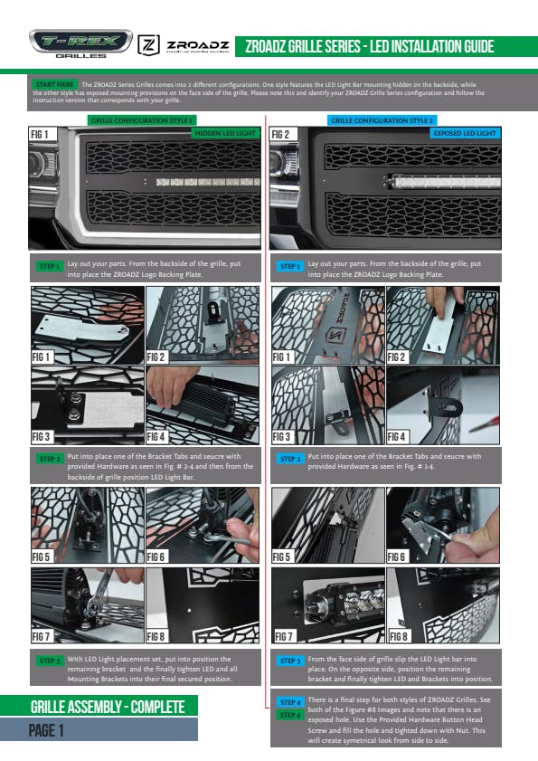 This slim line LED Grille design features an attractive custom laser cut pattern that encloses a powerful single row compact LED light bar, 1-piece laser cut construction and inspired by off road rugged styling. The main objective was to offer a complete package grille that includes a built-in ZROADZ high output LED light bar at an unbeatable price. We use several different materials throughout the design process. Our uncompromising quality begins with advanced 3D CAD supported engineering and design. All our products undergo rigorous testing for fit, finish, drivability and durability. Each part starts with a custom jig using laser cut materials, precision TIG welding and meticulous assembly and quality control. This dedication of American craftsmanship shows in every product that leaves our facility in California. All our black powder coated grilles go through a multi-stage process, first they are sandblasted to prepare the surface for our epoxy primer base coat. Second, they are cleaned to remove contaminants from the sandblast process. Then an epoxy primer base coat is applied and cured to seal the entire surface, finally the color top coat is applied over the primer and cured to provide long lasting protection and a high-quality OEM finish.